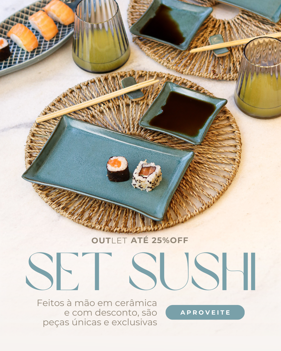 Set para Comida Japonesa Verde Turmalina 2 pessoas