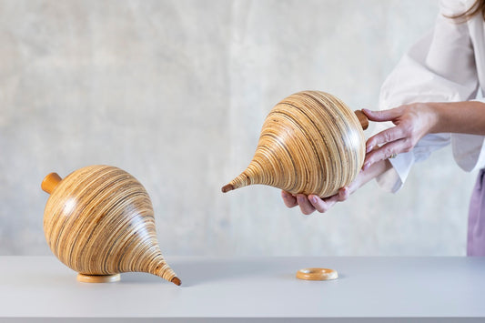 Escultura Pião Decorativo em Madeira