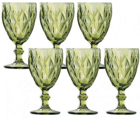 Conj De Taças P/ Água de Vidro Verde 6 Pcs Diamante