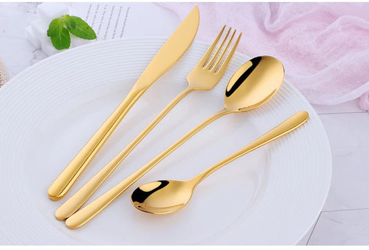 Conjunto de Talheres Luxo - 4 Peças Preto/Dourado