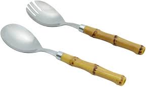 Talheres P/ Salada Aço Inox Cabo de Plástico Bambu 2pçs