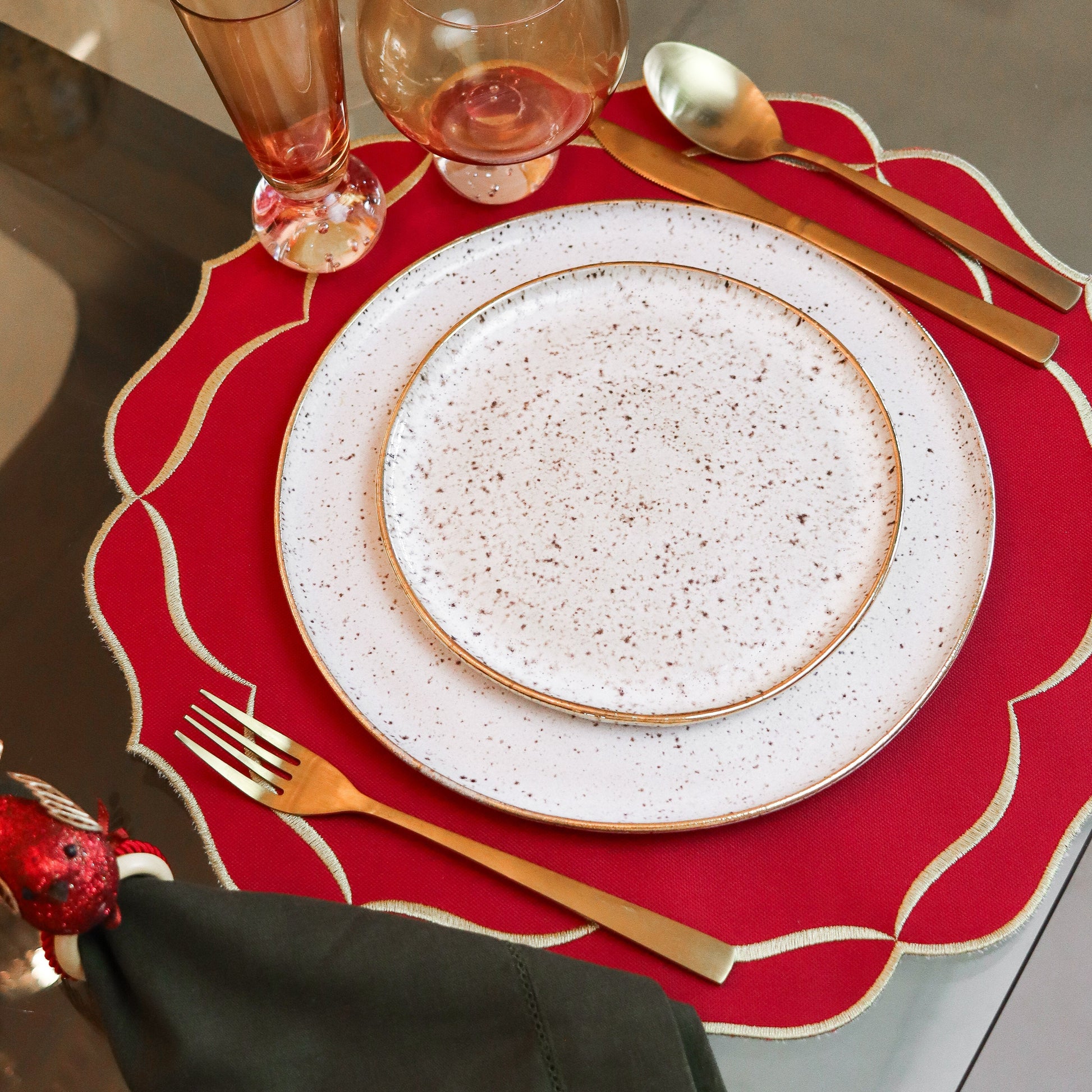 Jogo Americano Vermelho com Bordado Dourado – Elegância que ilumina sua mesa