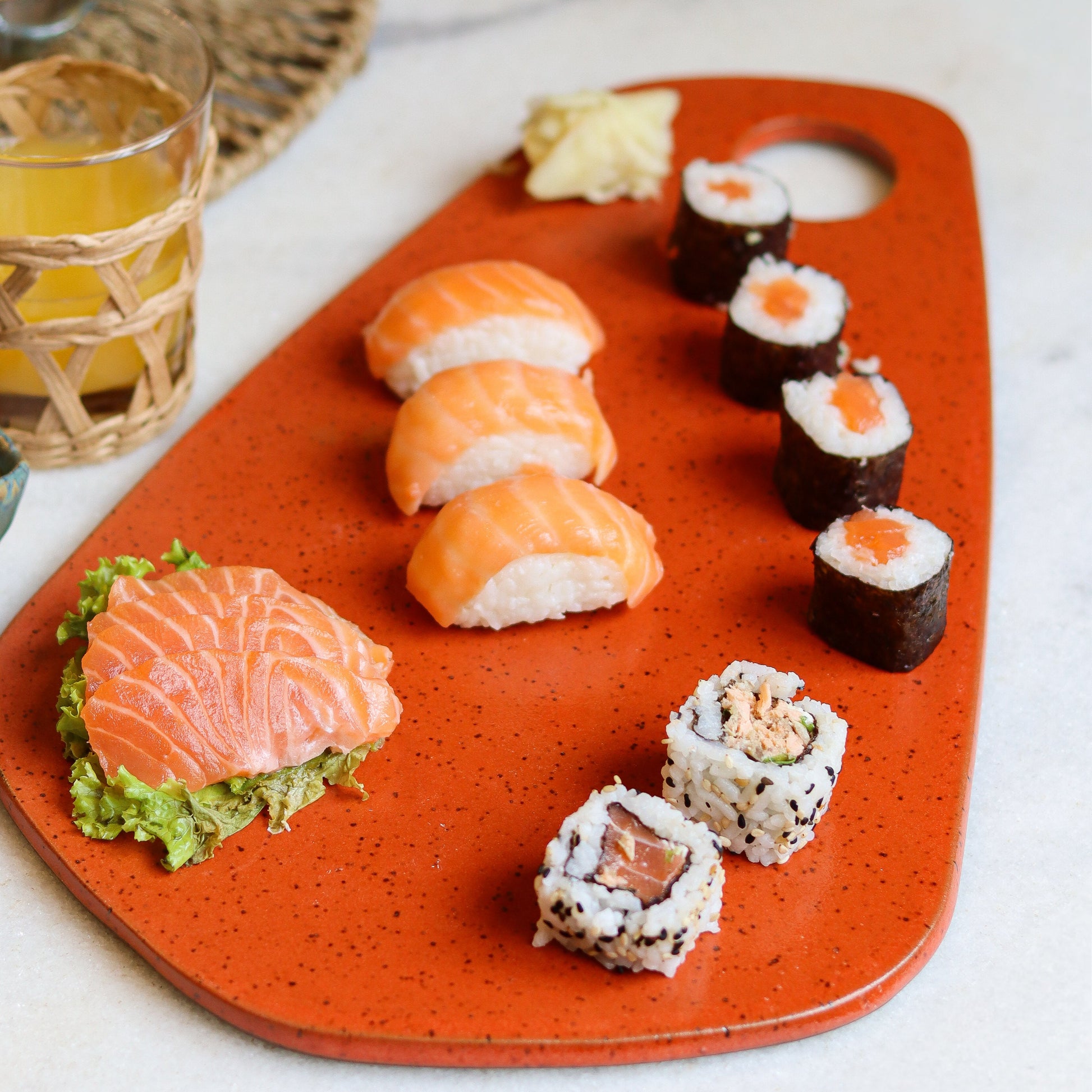 Com a tábua de frios orgânicos em cerâmica, cor goiaba, coleção Caju , sua mesa se transforma em um verdadeiro espetáculo de sabor e estilo. A combinação da cerâmica orgânica com a cor goiaba oferece um visual vibrante e acolhedor, perfeito para quem aprecia uma decoração única e sofisticada.